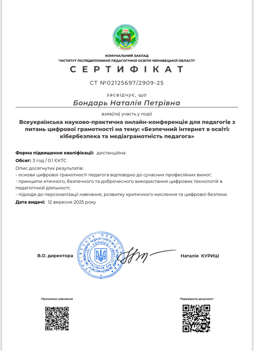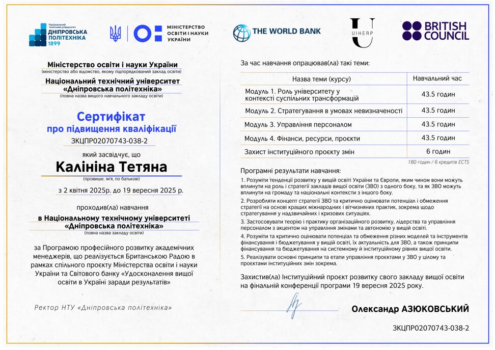 4. Включаючи онлайн-програми, тренінги, лекції та курси з інноваційних технологій, педагогіки та спеціальних дисциплін. Зокрема, викладачі кафедри долучилися до онлайн-лекцій провідних світових фахівців у галузі освіти та штучного інтелекту: «Генеративний штучний інтелект і освіта: можливості та виклики» професора Майка Шарплза та «Зміцнення української вищої освіти: орієнтація в еволюції ШІ у викладанні та навчанні» професора Роуз Ланкін. Ці заходи сприяють поглибленню знань у сфері застосування штучного інтелекту в освітньому процесі та адаптації викладацьких підходів до сучасних викликів.